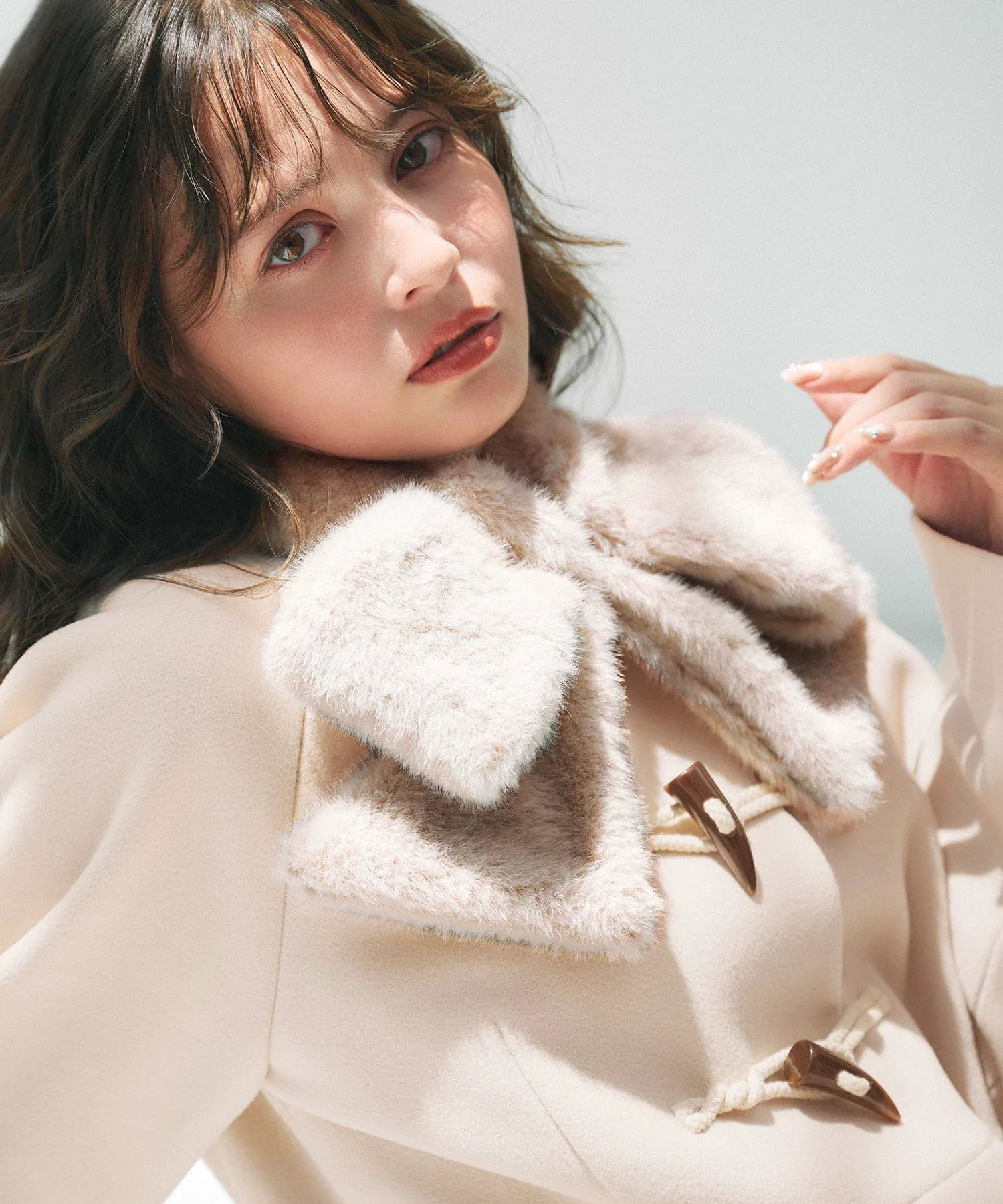 Эту накидку легко можно сформировать в ленту, просто застегнув крючок. Его можно использовать в самых разных случаях, от нарядных до повседневных образов. Он хорошо сочетается с простыми трикотажными изделиями и пальто, а также рекомендуется для вечеринок и особых случаев. Он разработан в соответствии с длинными пальто Feroux этого сезона, поэтому мы также рекомендуем сочетать его с длинным пальто Feroux.