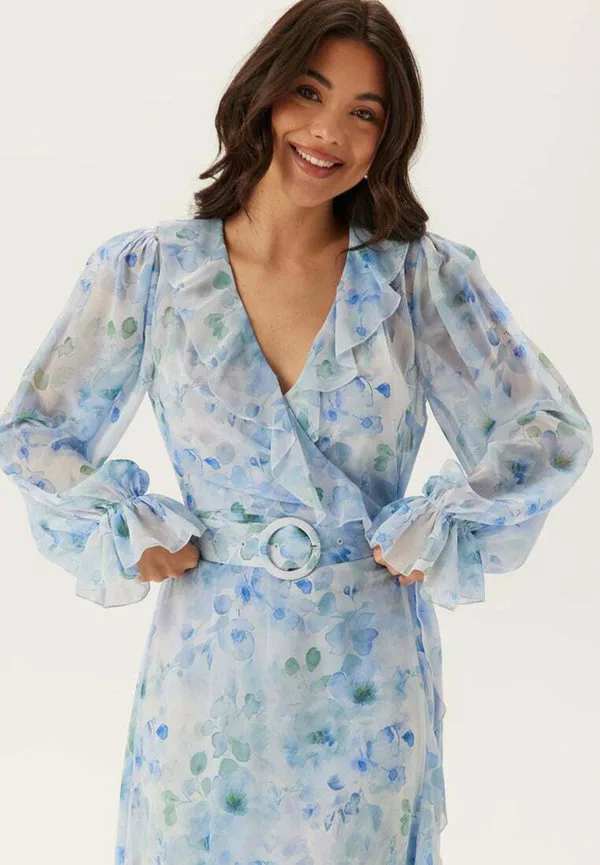Длинное платье с поясом Bubbleroom, Light Blue
