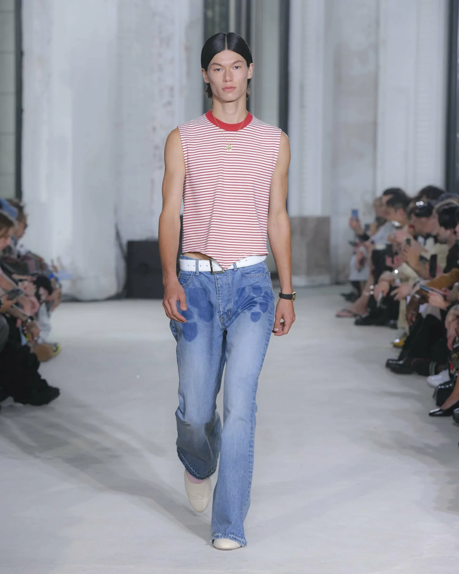 Рубашка без рукавов в полоску.