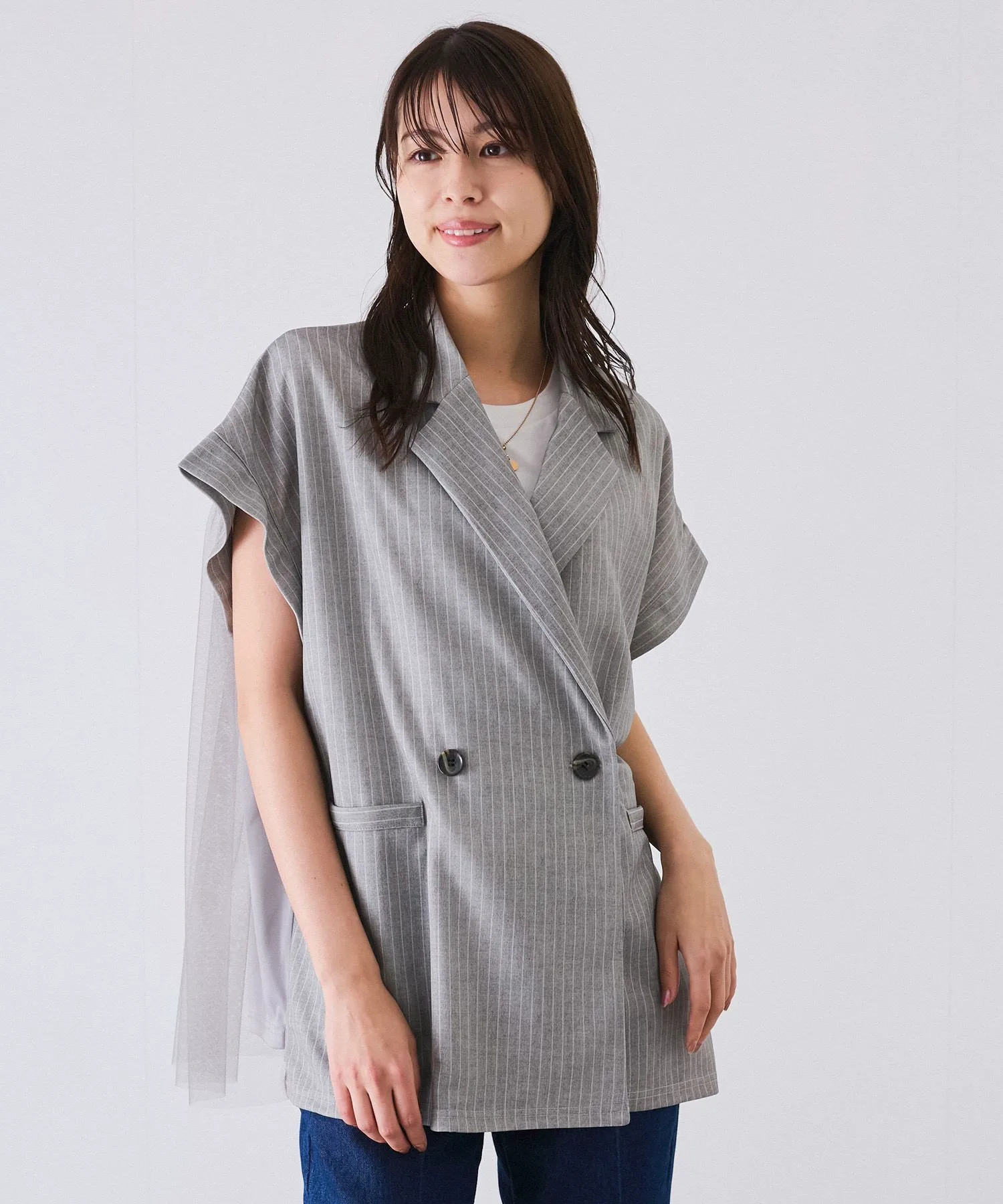 Жакет без рукавов с тюлем на спине.