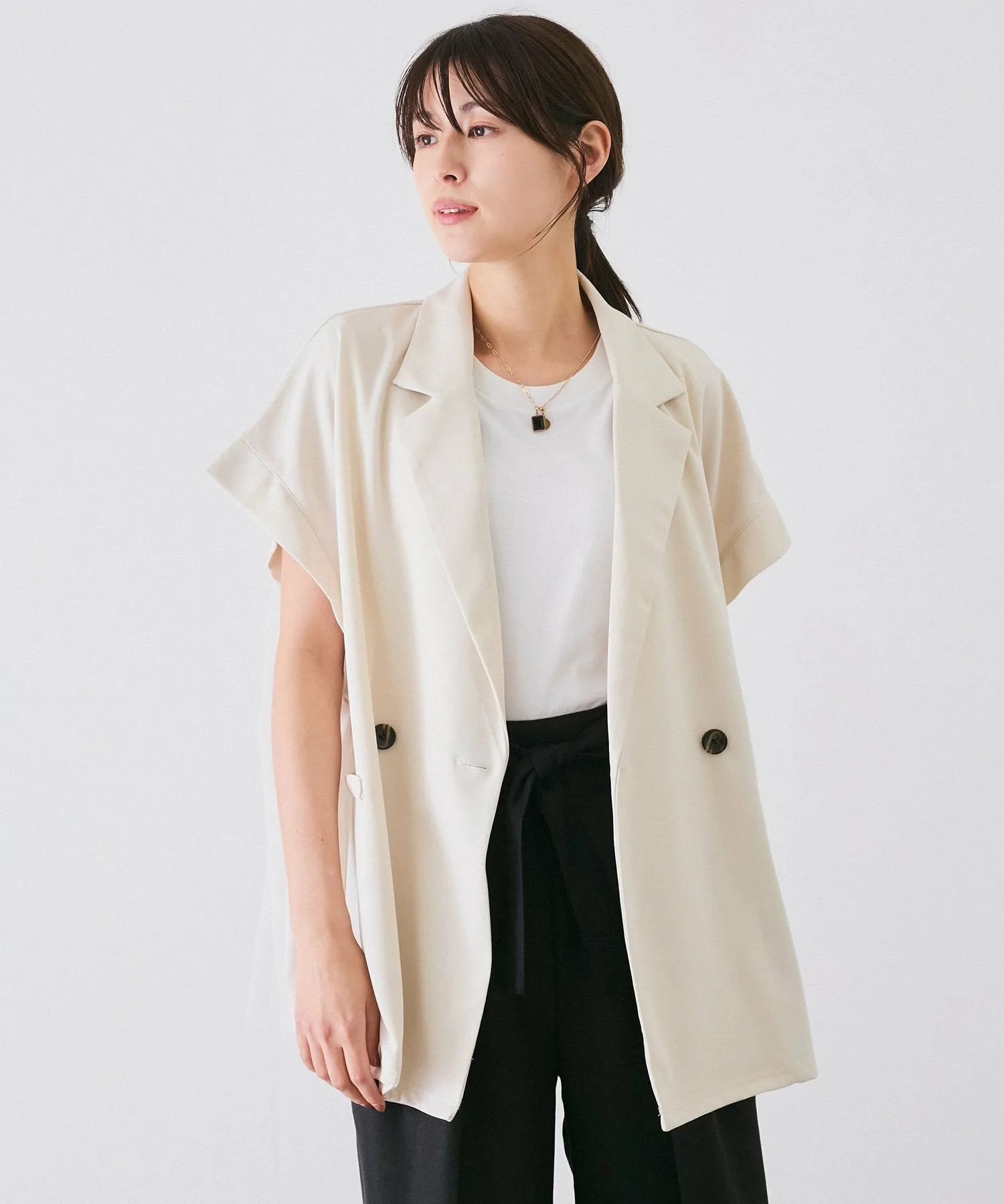 Жакет без рукавов с тюлем на спине.