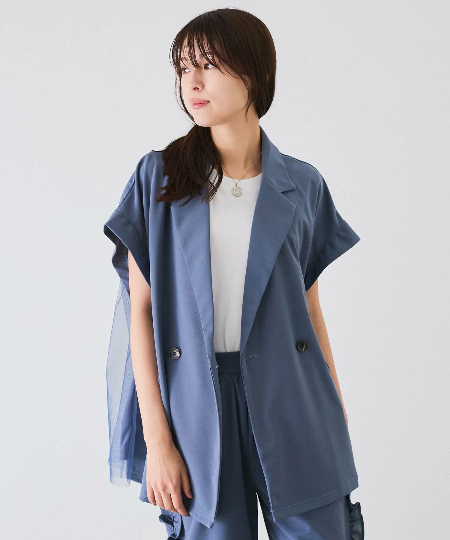 Жакет без рукавов с тюлем на спине.