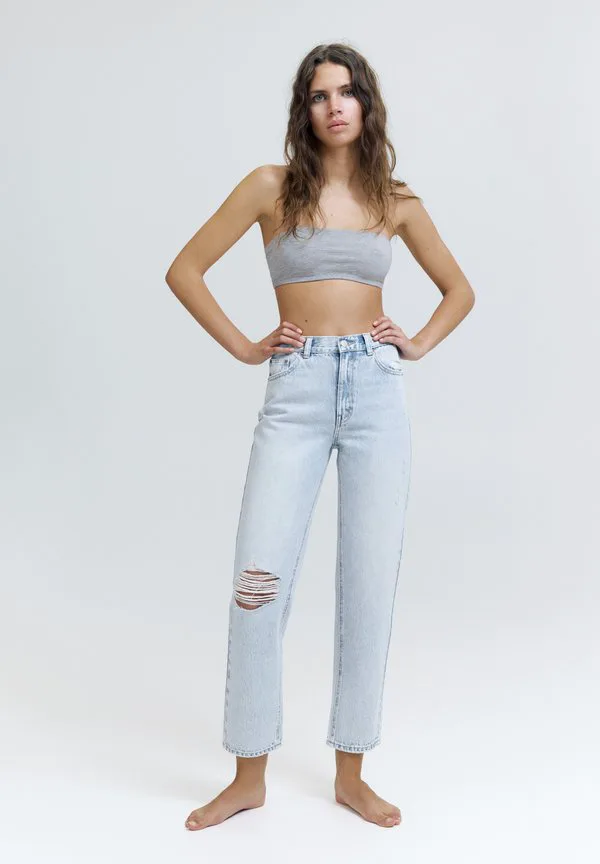 Рваные джинсы в стиле "мама" Pull&Bear, Light Blue