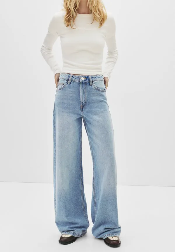 Широкие расклешенные джинсы Pull&Bear, Light Blue