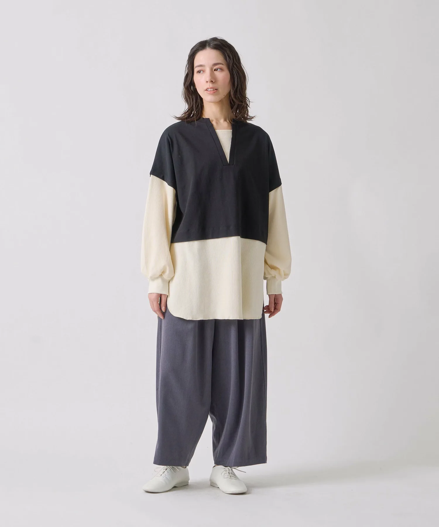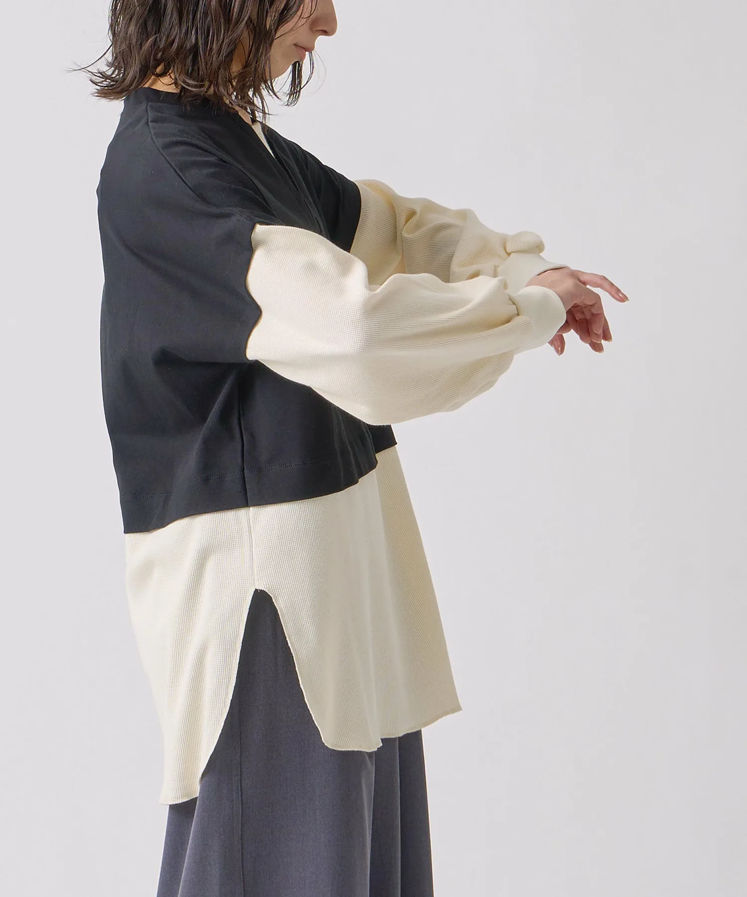 Сборенные манжеты и свободные рукава создают расслабленный силуэт.