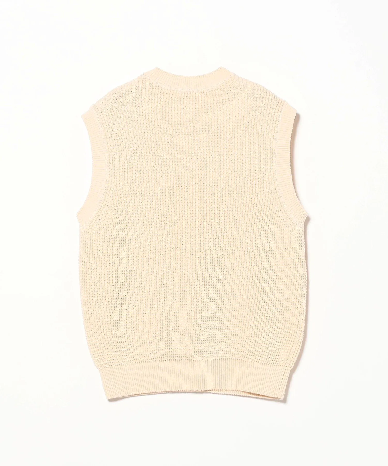 Этот жилет с круглым вырезом тщательно связан из трикотажа 7-го разряда с нерегулярной одинарной резинкой. Он имеет глубокий, похожий на джинсовый, цвет. Простая, но выразительная вязка создает изысканный образ для повседневной носки. Эта эксклюзивная модель выполнена в уникальной цветовой гамме от Demi-LuxeBEAMS.