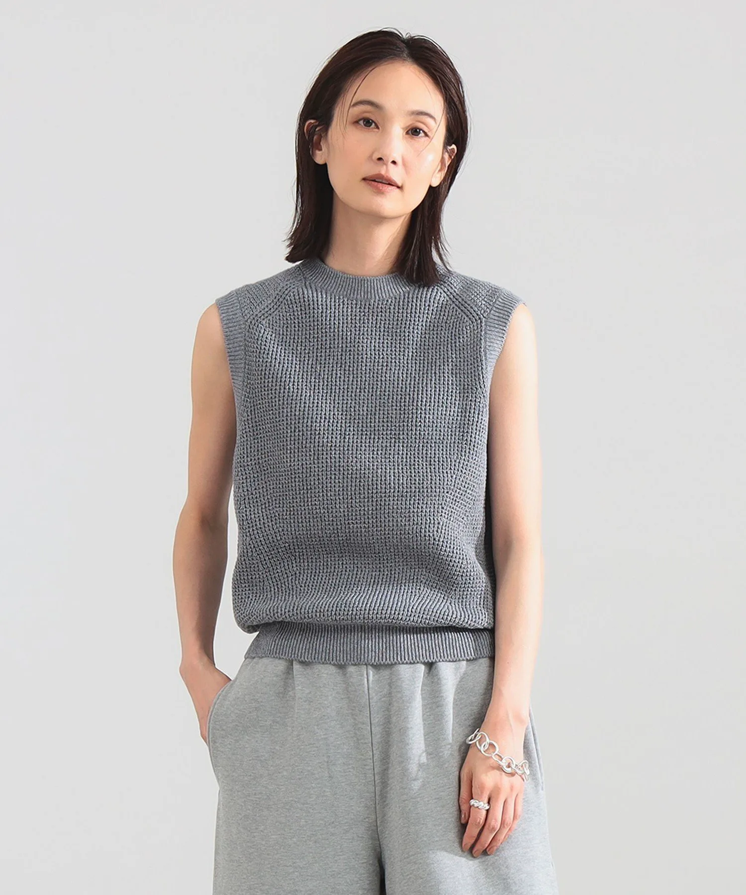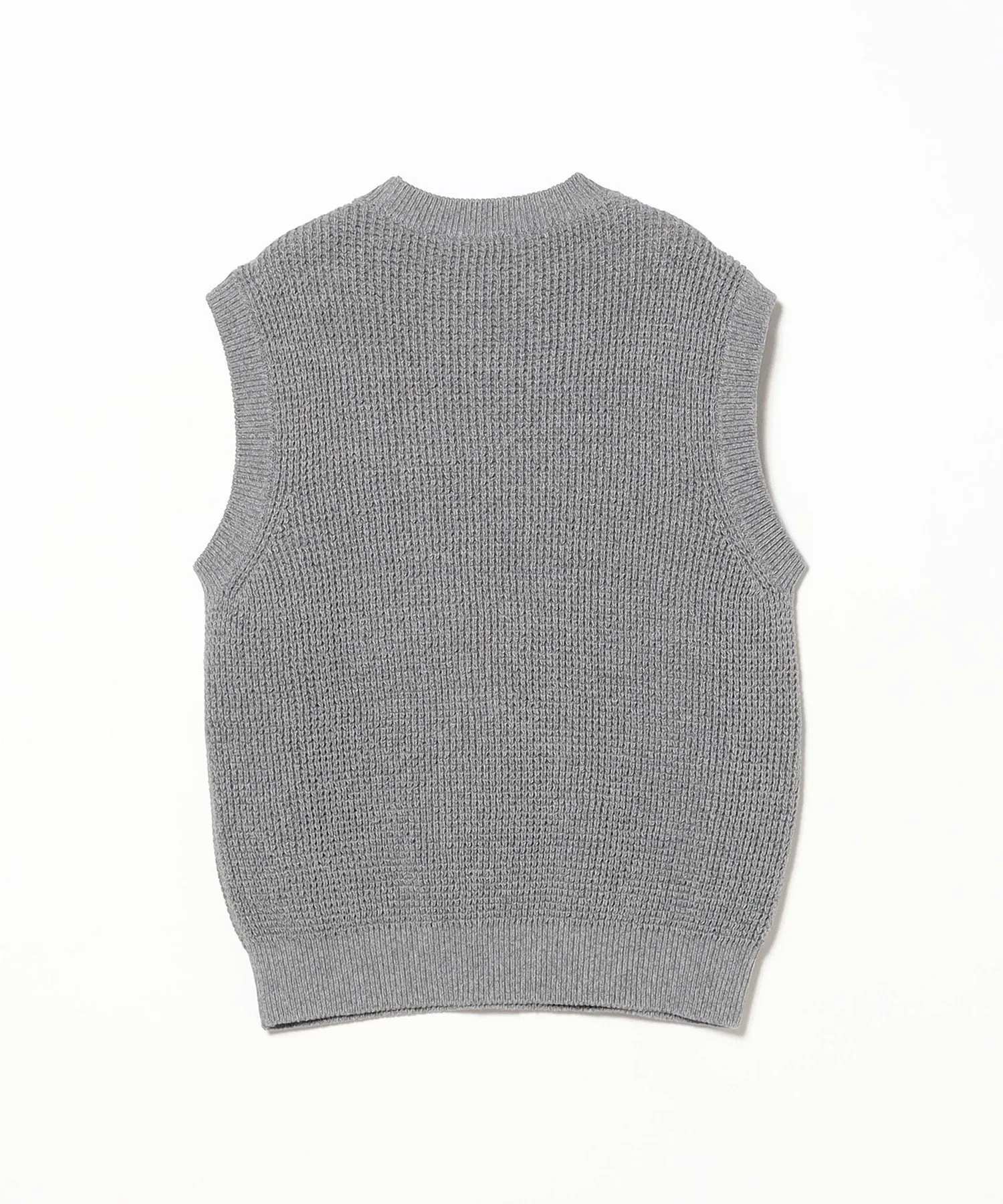 Этот жилет с круглым вырезом тщательно связан из трикотажа 7-го разряда с нерегулярной одинарной резинкой. Он имеет глубокий, похожий на джинсовый, цвет. Простая, но выразительная вязка создает изысканный образ для повседневной носки. Эта эксклюзивная модель выполнена в уникальной цветовой гамме от Demi-LuxeBEAMS.