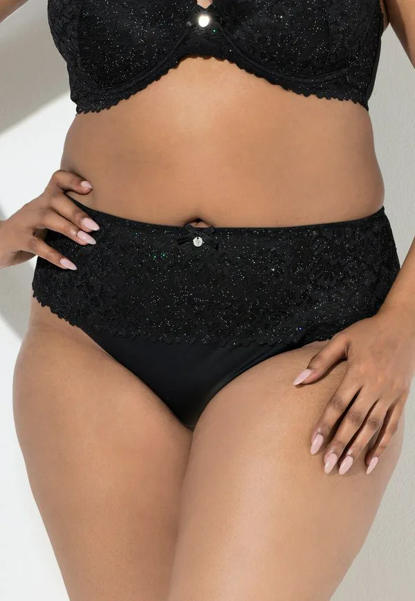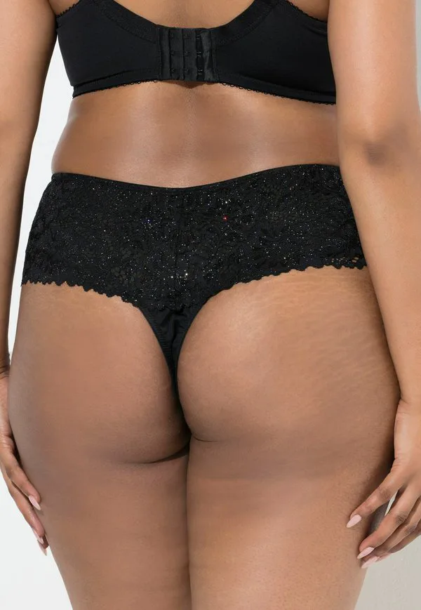 Блестящие стринги с высокой посадкой Ulla Popken, Black