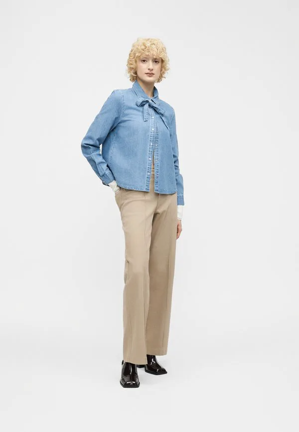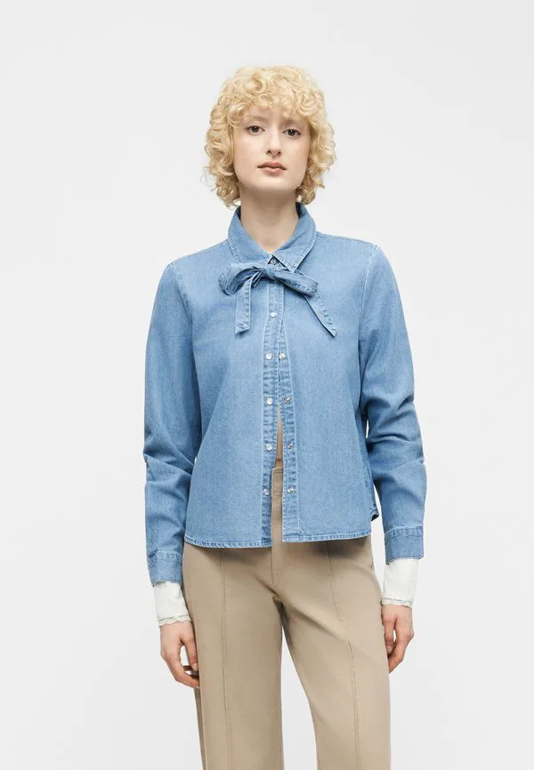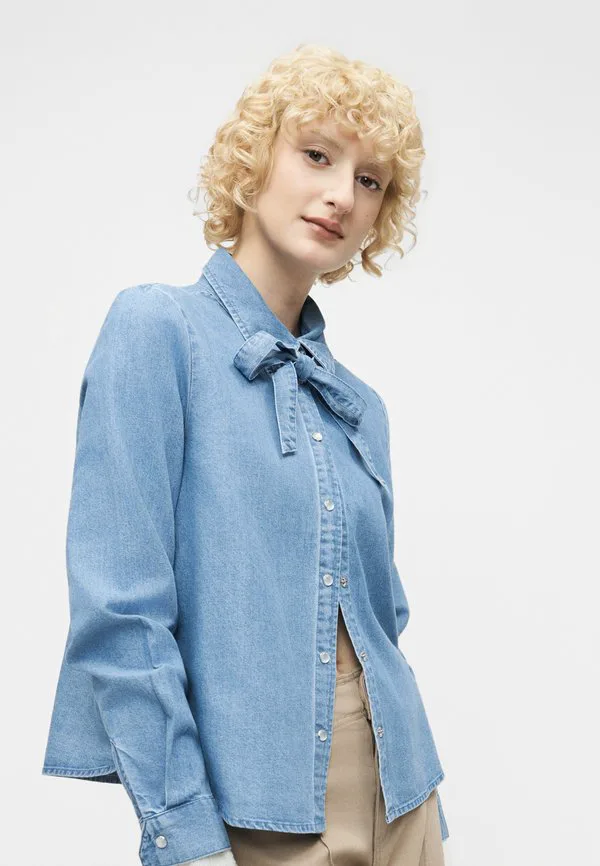 Рубашка с бантом viconga, блузка на пуговицах Vila, Light Blue Denim