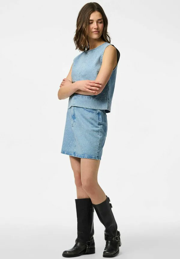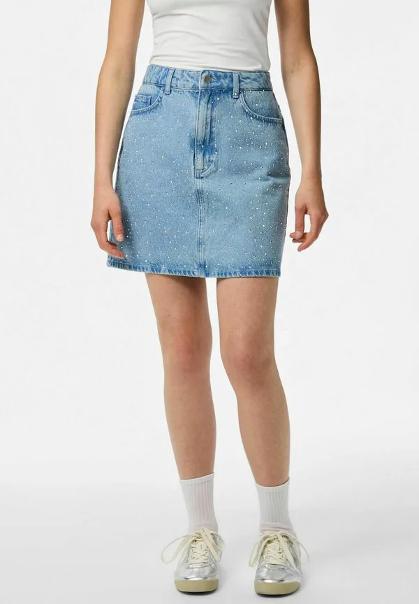 Джинсовая юбка pcnoel со стразами Pieces, Light Blue Denim
