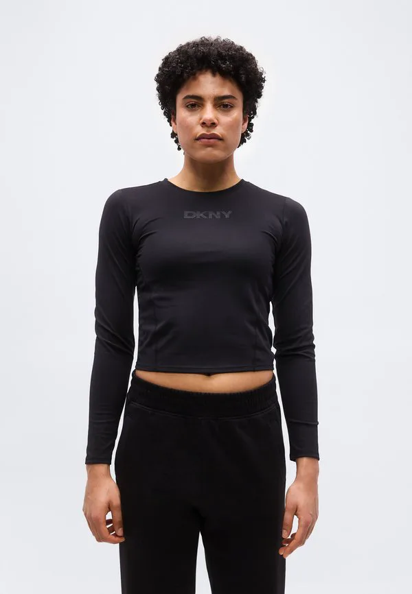 Укороченный топ с длинными рукавами и логотипом Dkny, Black