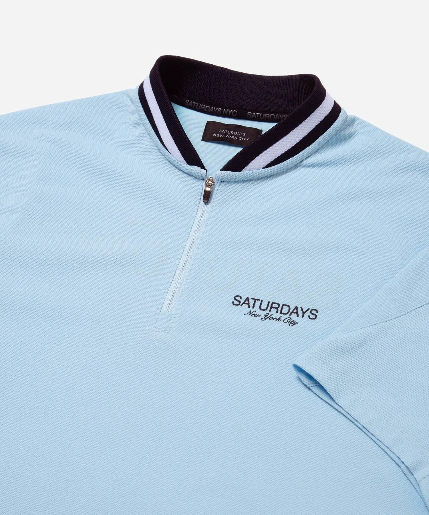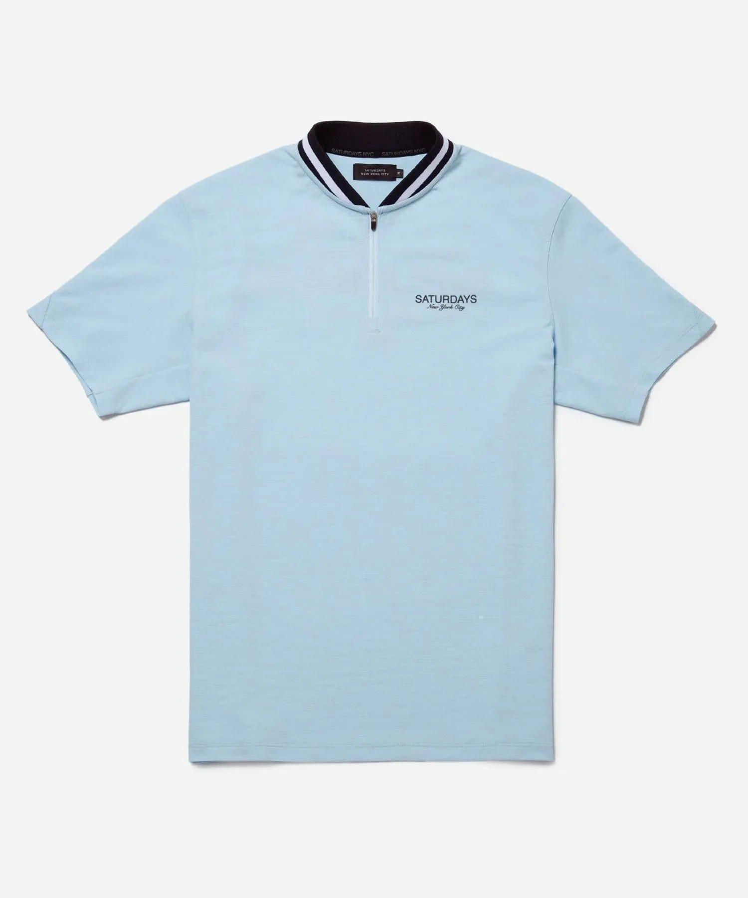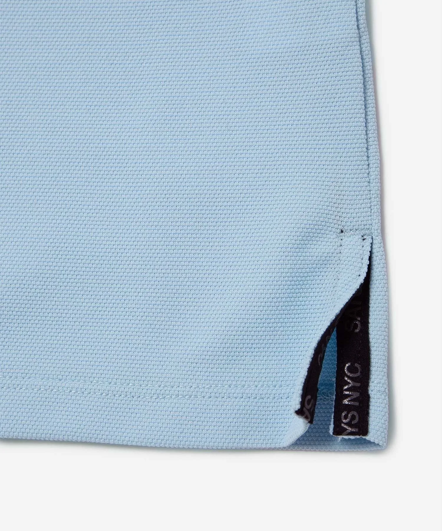 Рубашка с короткими рукавами и молнией до середины груди, изготовленная из ткани пике с использованием переработанной пряжи, которая обладает влагопоглощающими, быстросохнущими свойствами и защитой от УФ-излучения.