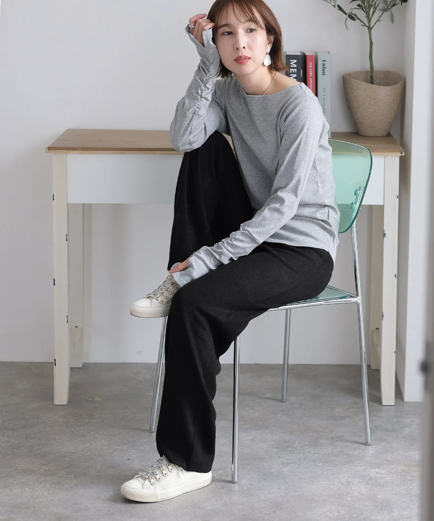 Эти брюки с широкими штанинами изготовлены из мягкого, похожего на кашемир акрилового трикотажа.