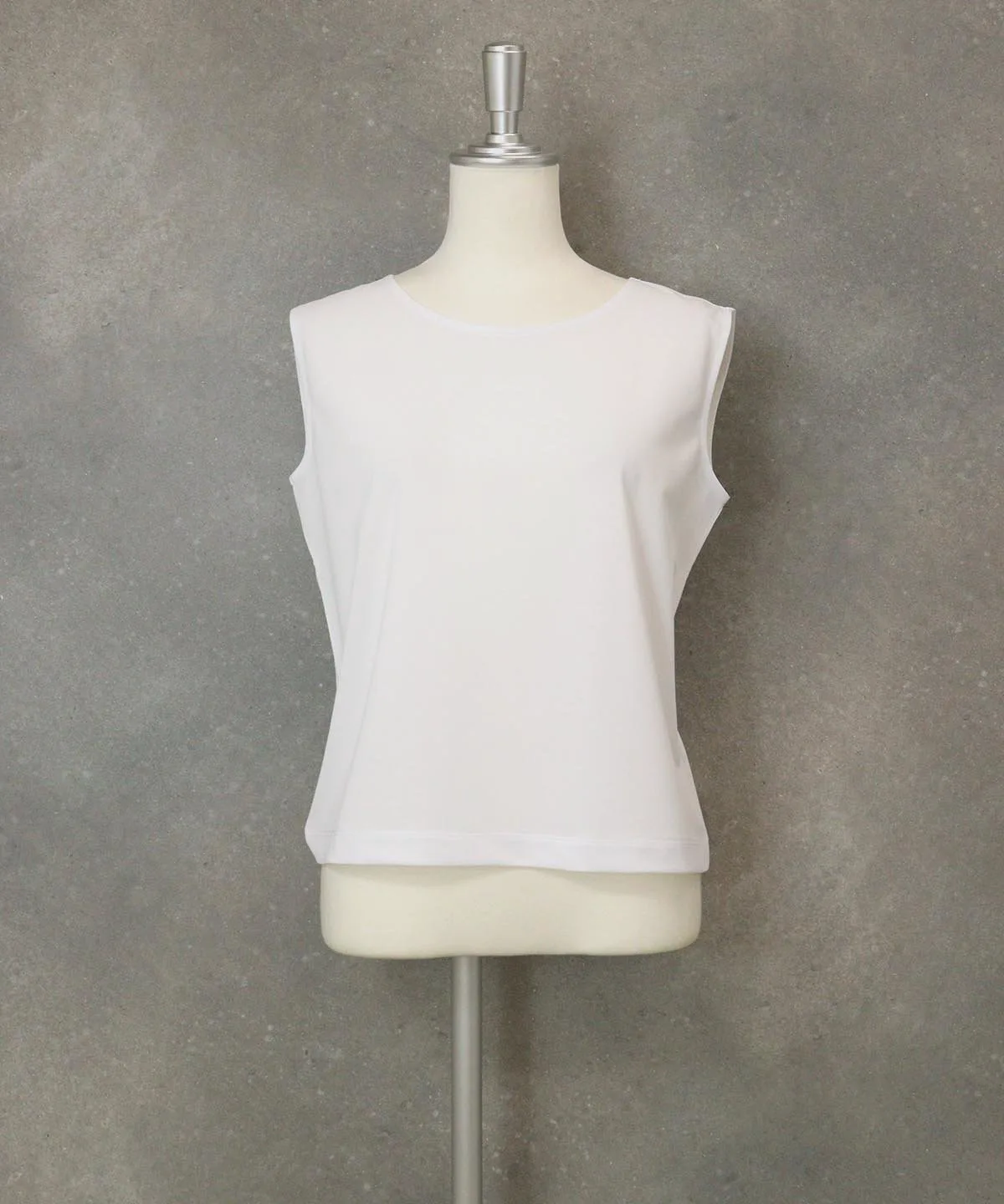 - Топ без рукавов, надетый под низ, имеет гладкую текстуру.