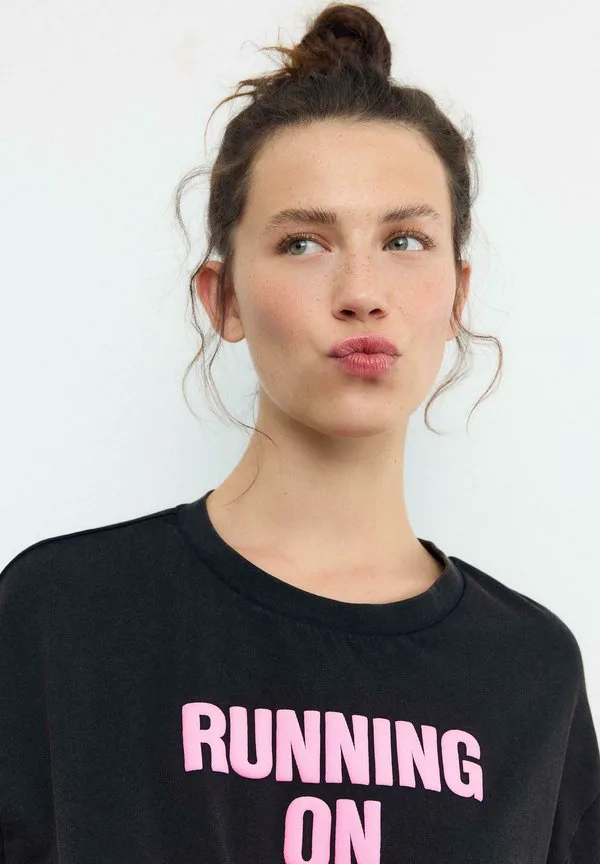 Футболка с принтом кофеина Stradivarius, Black