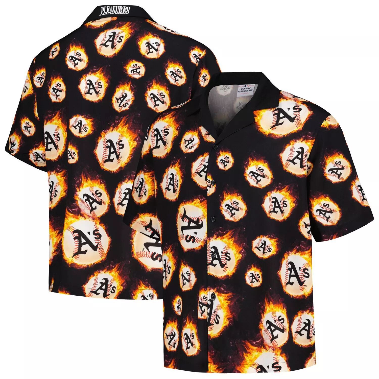 Мужская черная рубашка на пуговицах Oakland Athletics Flame Fireball