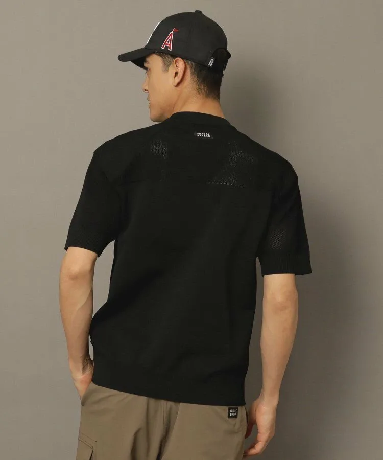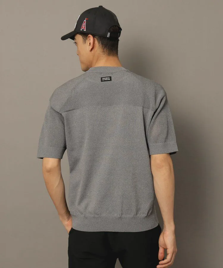 Этот мужской трикотажный джемпер с коротким рукавом выполнен из тонкой сетчатой ткани.