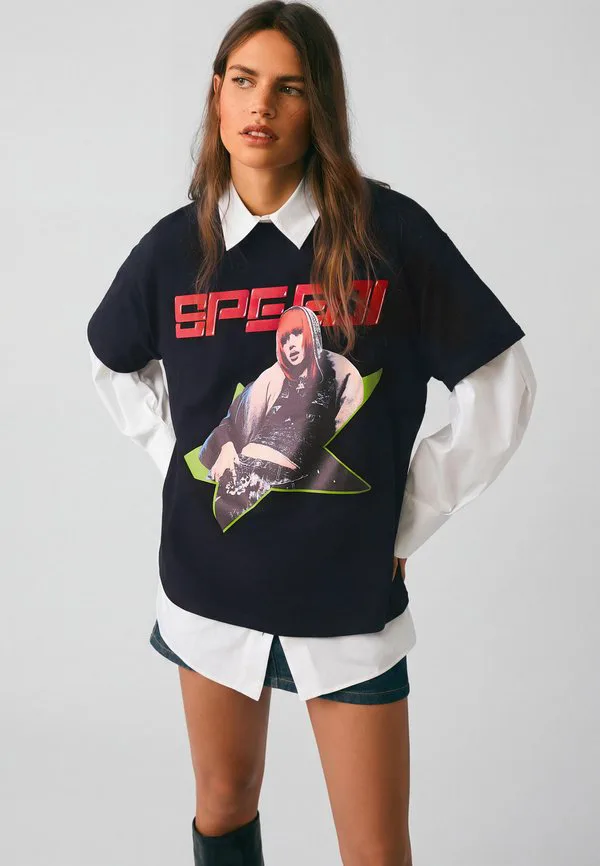 Футболка с принтом Bershka, Black 3 787₽