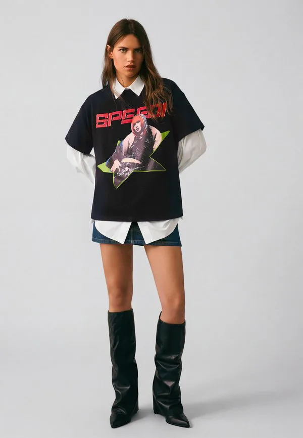 Футболка с принтом Bershka, Black