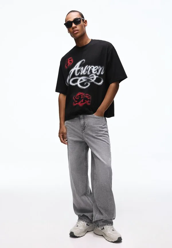 Футболка с принтом boxyfit Bershka, Black 3 456₽