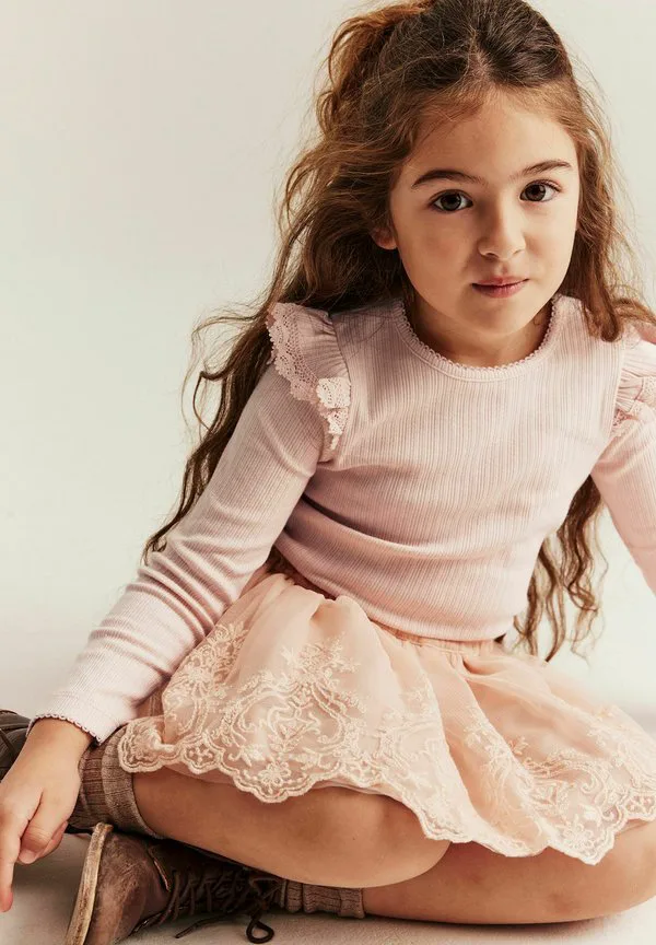 Топ с длинными рукавами и оборками Newbie, Light Pink