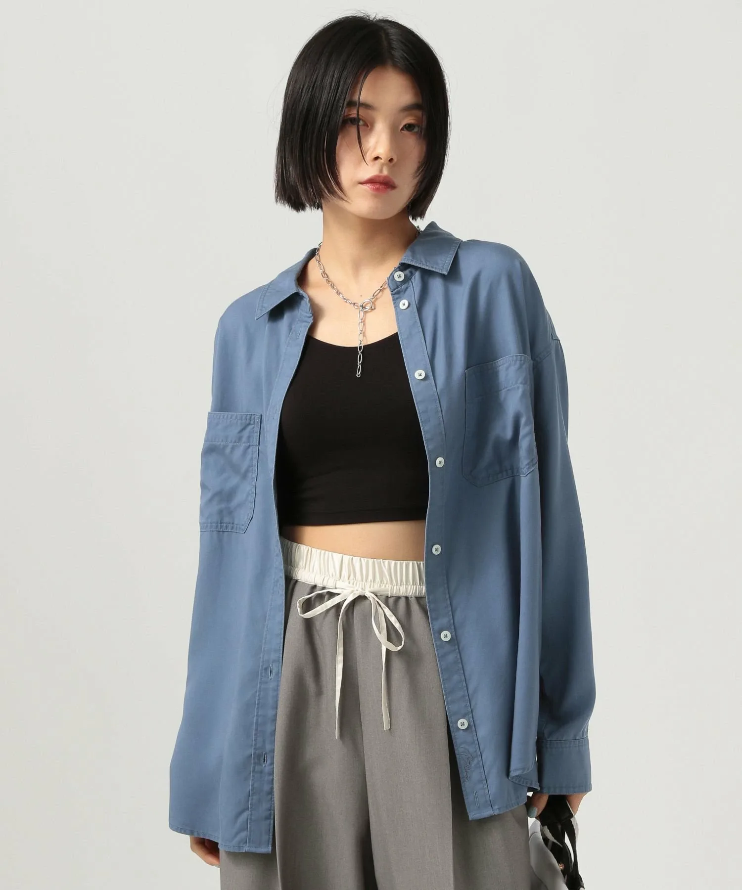 Базовая рубашка свободного силуэта с большим нагрудным карманом.