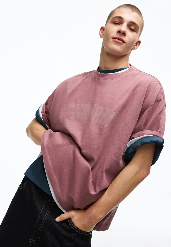 Футболка с принтом Bershka, Light Red