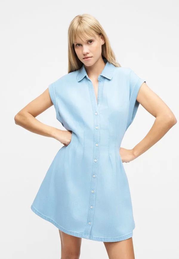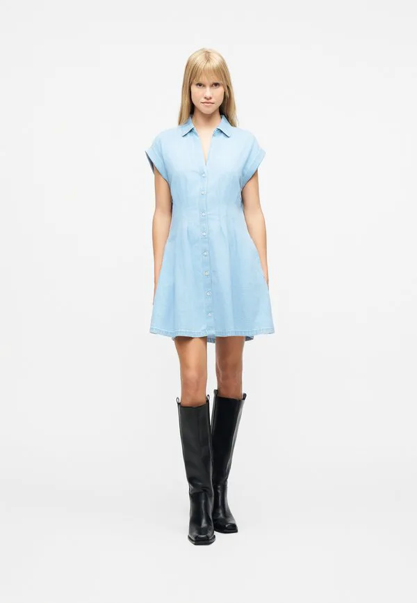 Мини-Платье с защипами, джинсовое платье "жаворонок" Gap, Light Wash