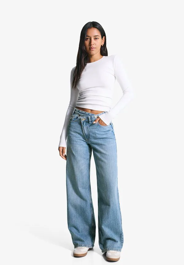 Широкие ноги Bershka, Light-Blue Denim
