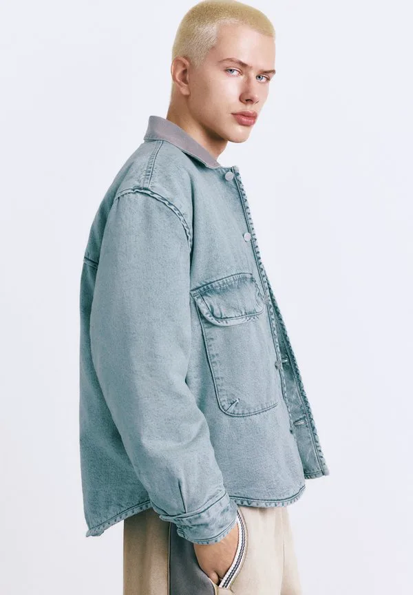 Джинсовая куртка с контрастным воротником Pull&Bear, Light-Blue Denim