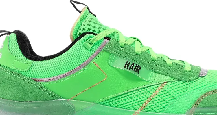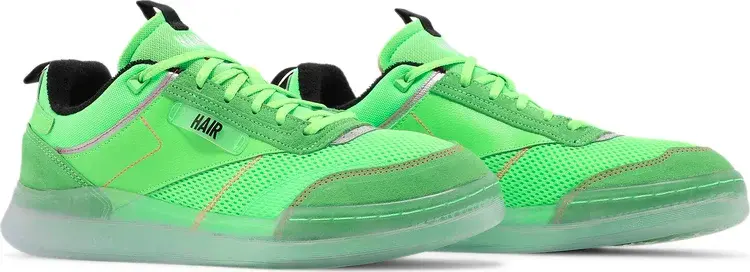 Разработанная в сотрудничестве с известным колористом, модель Daniel Moon x Reebok Club C Legacy «Solar Green» обновляет ретро-силуэт обновленными материалами и флуоресцентной палитрой. Верх выполнен из ярко-зеленой сетки с накладками из кожи и замши в тон. Однотонная отделка нарушается розовой контрастной строчкой и черными вкраплениями на подкладке воротника и паре лямок на лямках. Надпись «Hair» нанесена на язычок, а полупрозрачный логотип — на правый ботинок. Низкий верх установлен на прозрачной резиновой подошве cupsole с амортизирующей вставкой из EVA для плавного хода.