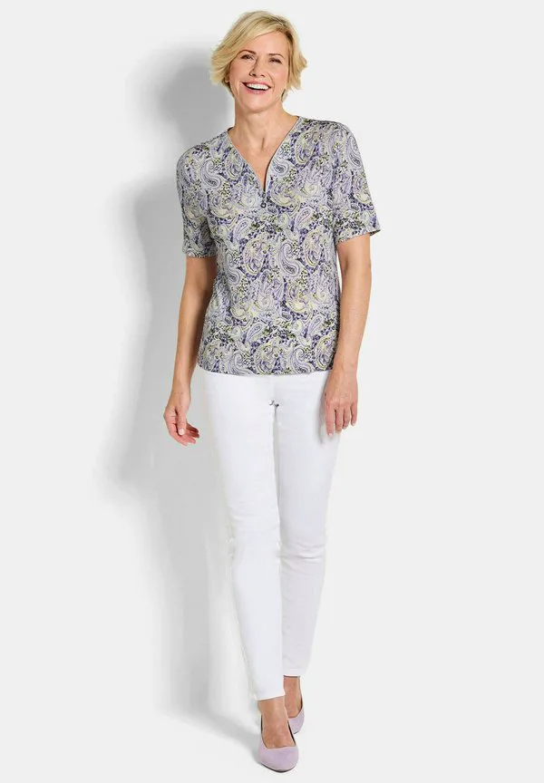 Блузка mit reissverschluss am ausschnitt Goldner, Lilac/Green Patterned
