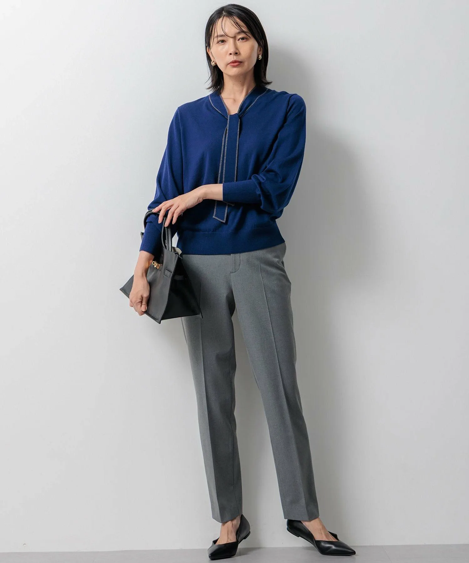 Это вязаное изделие с бантом выполнено из трикотажа, что обеспечивает гладкую текстуру. Главная изюминка – цветовая гамма банта. Пышные рукава созданы за счет увеличения количества петель, что позволяет легко включить это изделие в элегантный образ, даже в офисе. Оно хорошо сочетается как с брюками, так и с юбками, поэтому подходит для любого случая. Доступно в четырех цветах: холодный серый (#004), базовый черный (#005), женственный бежевый (#033) и темно-синий (#070).