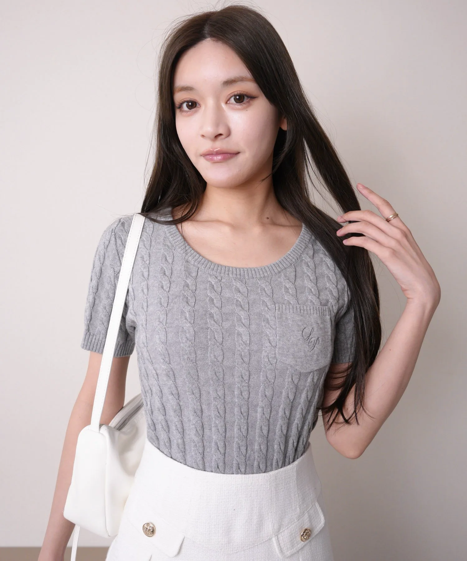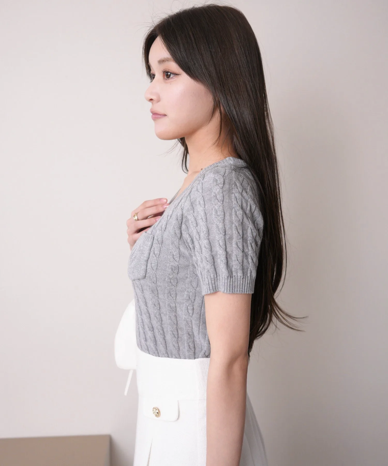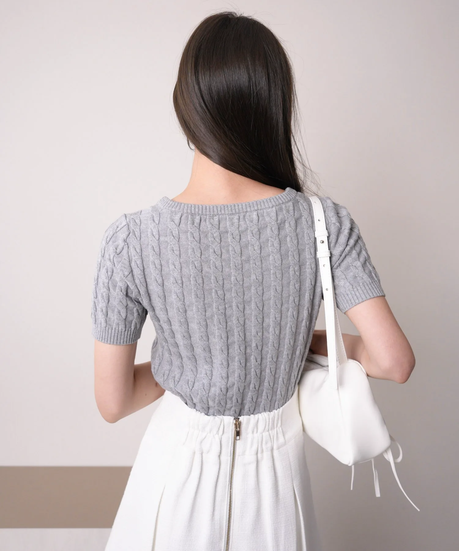 - Вязаный узор «косичка» создает трехмерный эффект, подчеркивая вертикальные линии и визуально стройня.