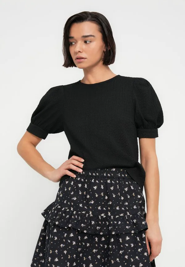 Блузка с вырезом на шее Pieces, Black