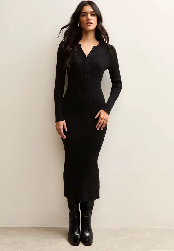 Платье-Комбинезон миди в рубчик New Look, Black