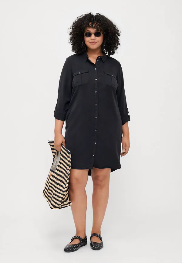 Платье vmcsigga, комбинированное платье-рубашка Vero Moda Curve, Black