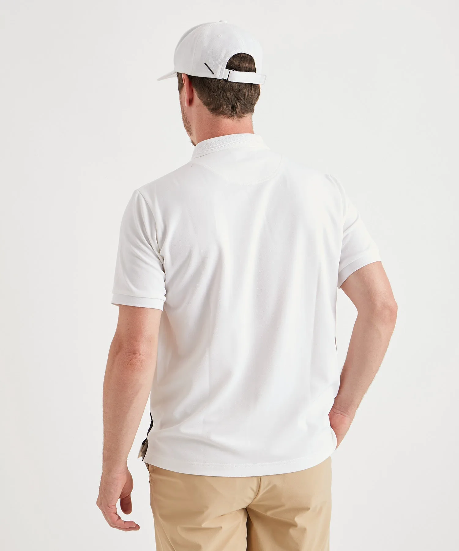 Крой от рукава до подмышки выполнен таким образом, чтобы не мешать движению рук во время удара в гольфе.