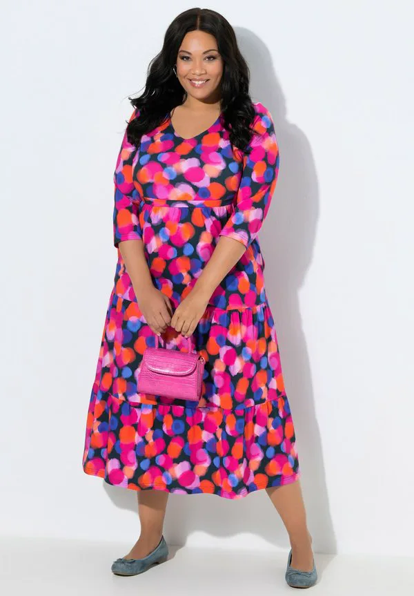 Платье-Трапеция с карманами в горошек Ulla Popken, Black