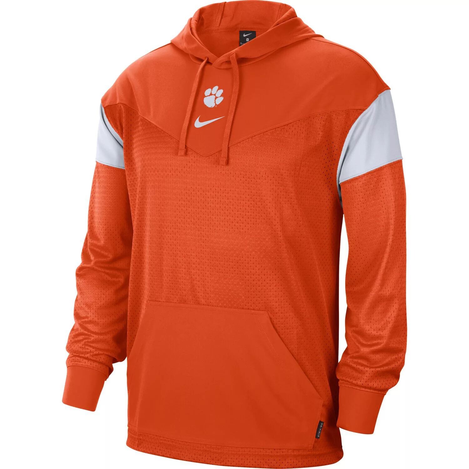 В этом пуловере с капюшоном Sideline Jersey от Nike вы с гордостью представляете команду Clemson Tigers. Он отличается яркой командной графикой, поэтому каждый увидит, какой школе вы преданы. Этот легкий пуловер из сетки станет отличным и уютным дополнением к вашей коллекции Clemson Tigers.