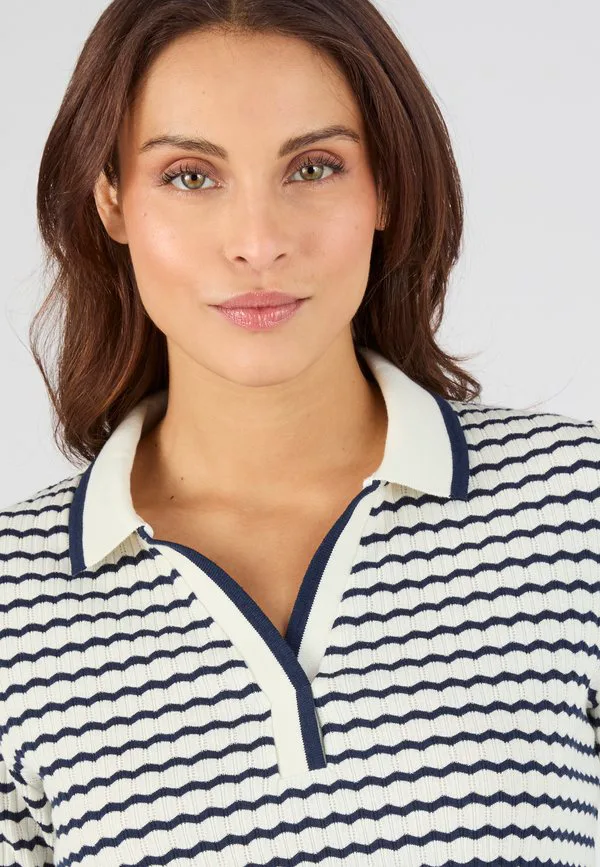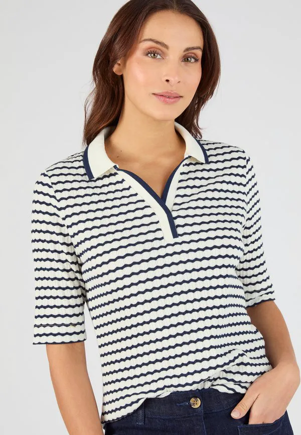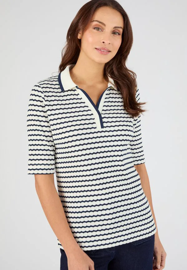 Рубашка поло pointelle ou rayé Damart, Marine Rayé