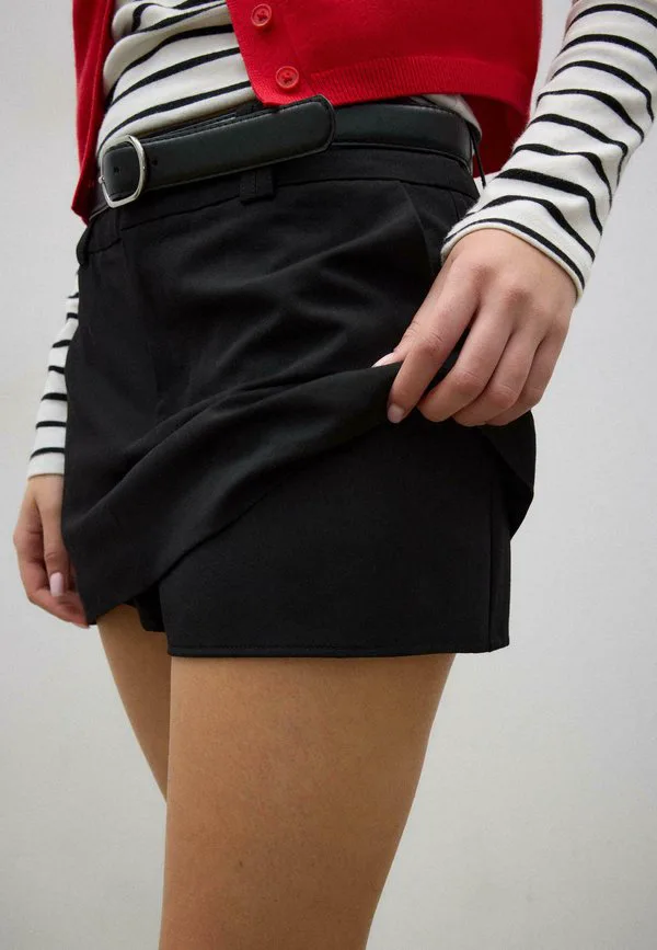 Мини-Юбка с поясом Stradivarius, Black