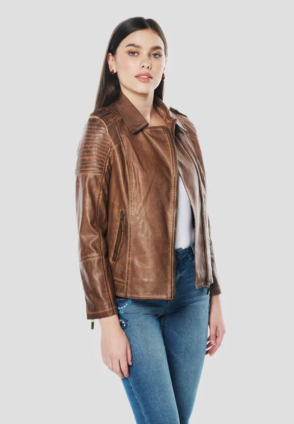 Блейзер с байкерским эффектом Koroshi, Marron Brown