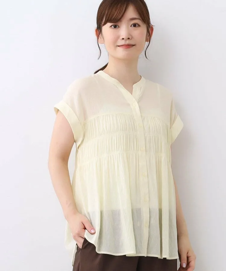 Эта блузка имеет сборки от груди до спины, что придает ей солидный вид.