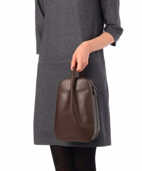 Эта сумка сочетает в себе функциональную красоту в использовании и привлекательный внешний вид в сложенном виде. Несмотря на вертикальную форму, её легко доставать и убирать, повернув набок, как клатч. Широкое отверстие на молнии позволяет легко доставать и убирать длинный кошелёк и т.д. Материал — телячья кожа, дубленая растительными дубильными веществами, настоящая кожа. Она легко царапается, но со временем приобретёт уникальный характер и блеск. Насладитесь неповторимым очарованием простой кожи.