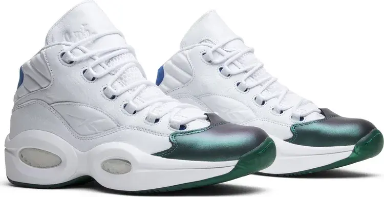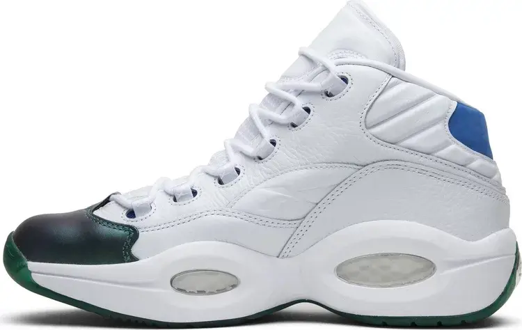 Выпущенные в 1996 году, чтобы совпасть с его дебютным сезоном, Question стали первыми кроссовками Аллена Айверсона в Reebok. Его игра вскоре сделала кроссовки популярным силуэтом, что привело к появлению новых итераций и легионов поклонников, включая Curren$y. Рэпер сотрудничал с Reebok, чтобы создать Curren$y x Question Mid «Jet Life», его собственный уникальный вариант фирменных кроссовок The Answer. Верх средней части из белой помятой кожи с переливающимся носком и логотипом Jet Life на синем замшевом каблуке. Потайной карман на язычке раскрывает индивидуальный подход Curren$y.