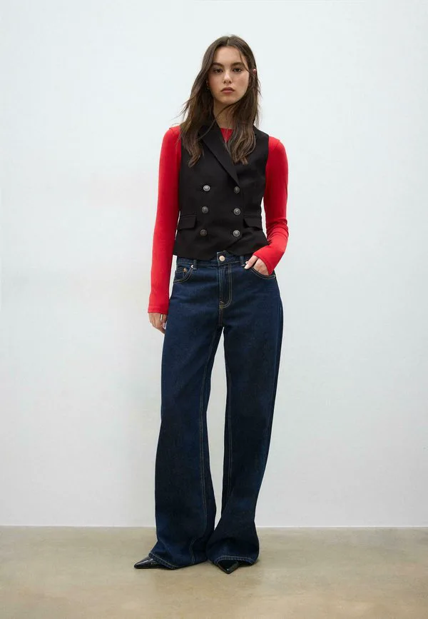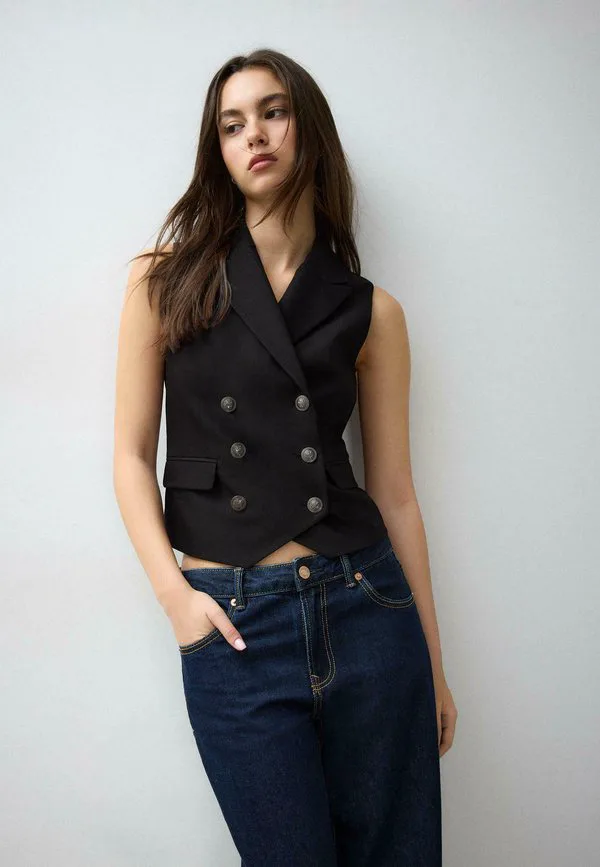 Двубортный жилет Stradivarius, Black