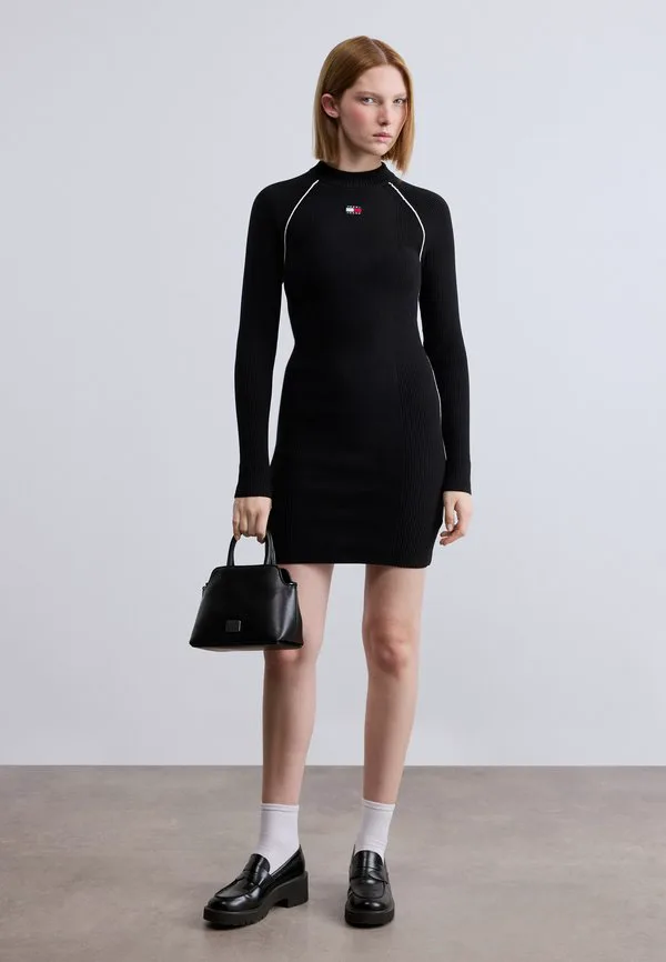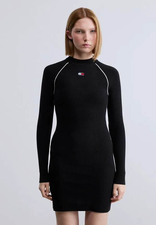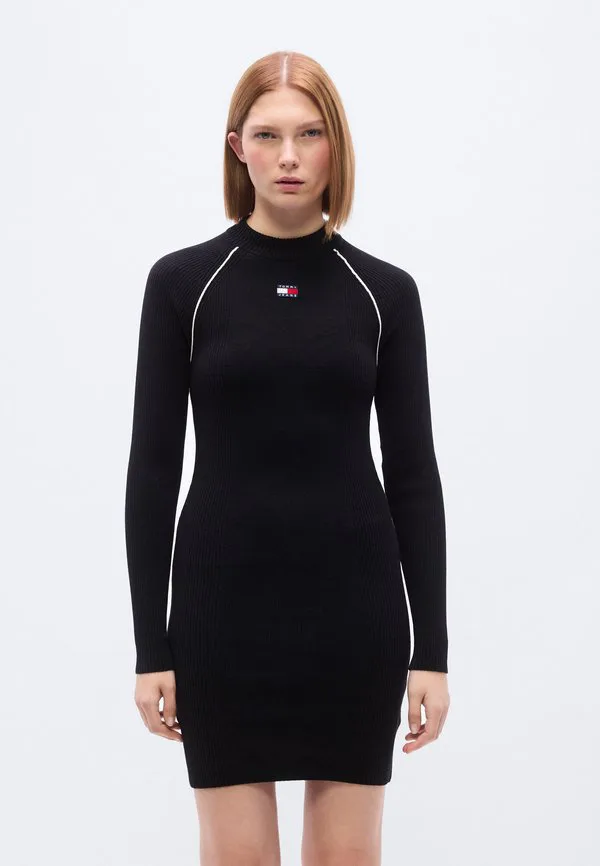 Платье-Свитер с цветовыми блоками, платье-футляр Tommy Jeans, Black