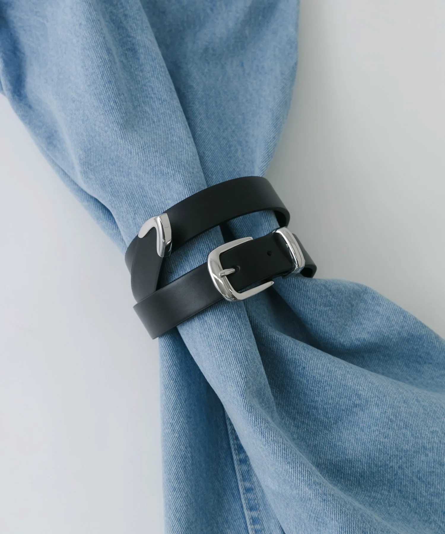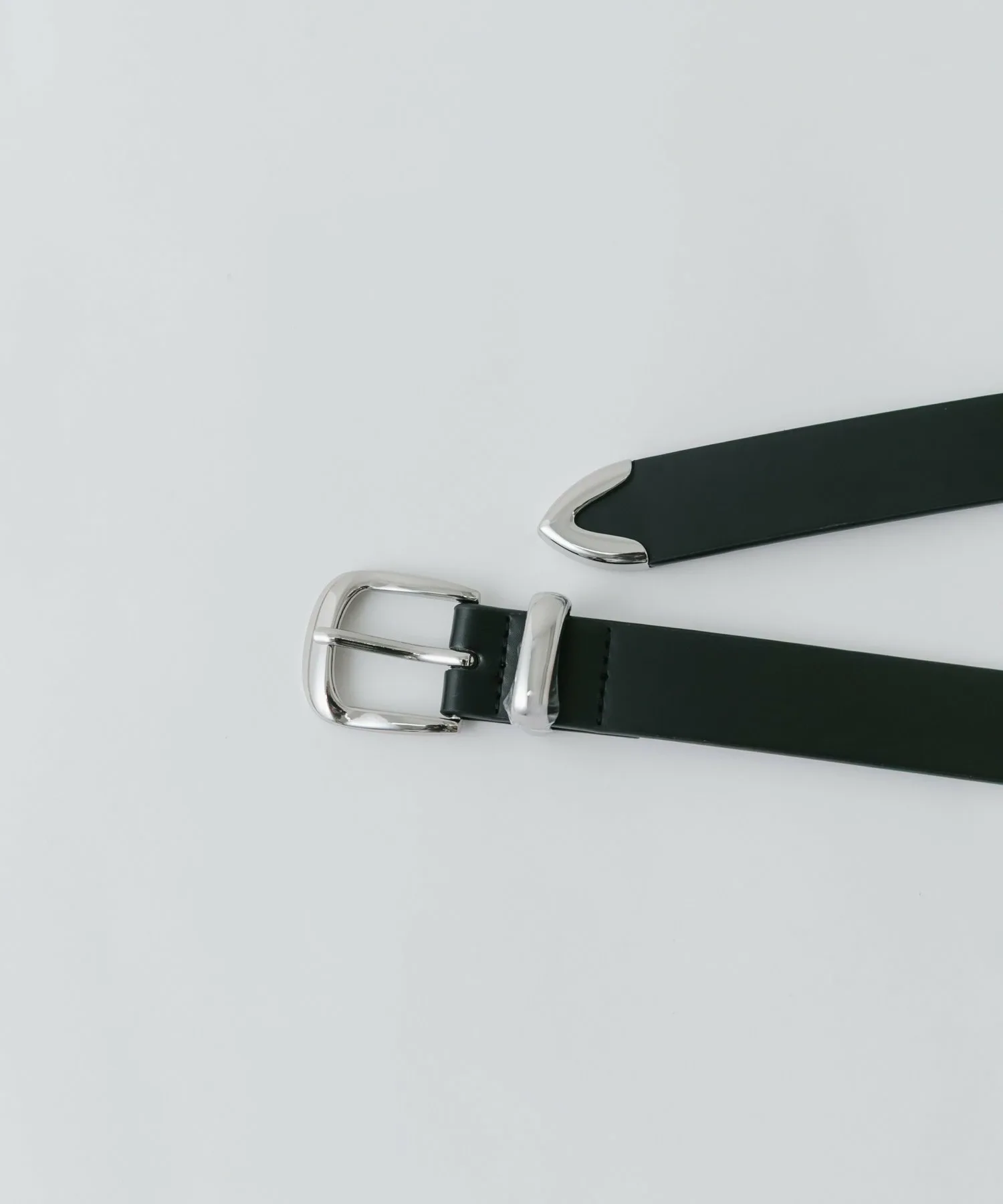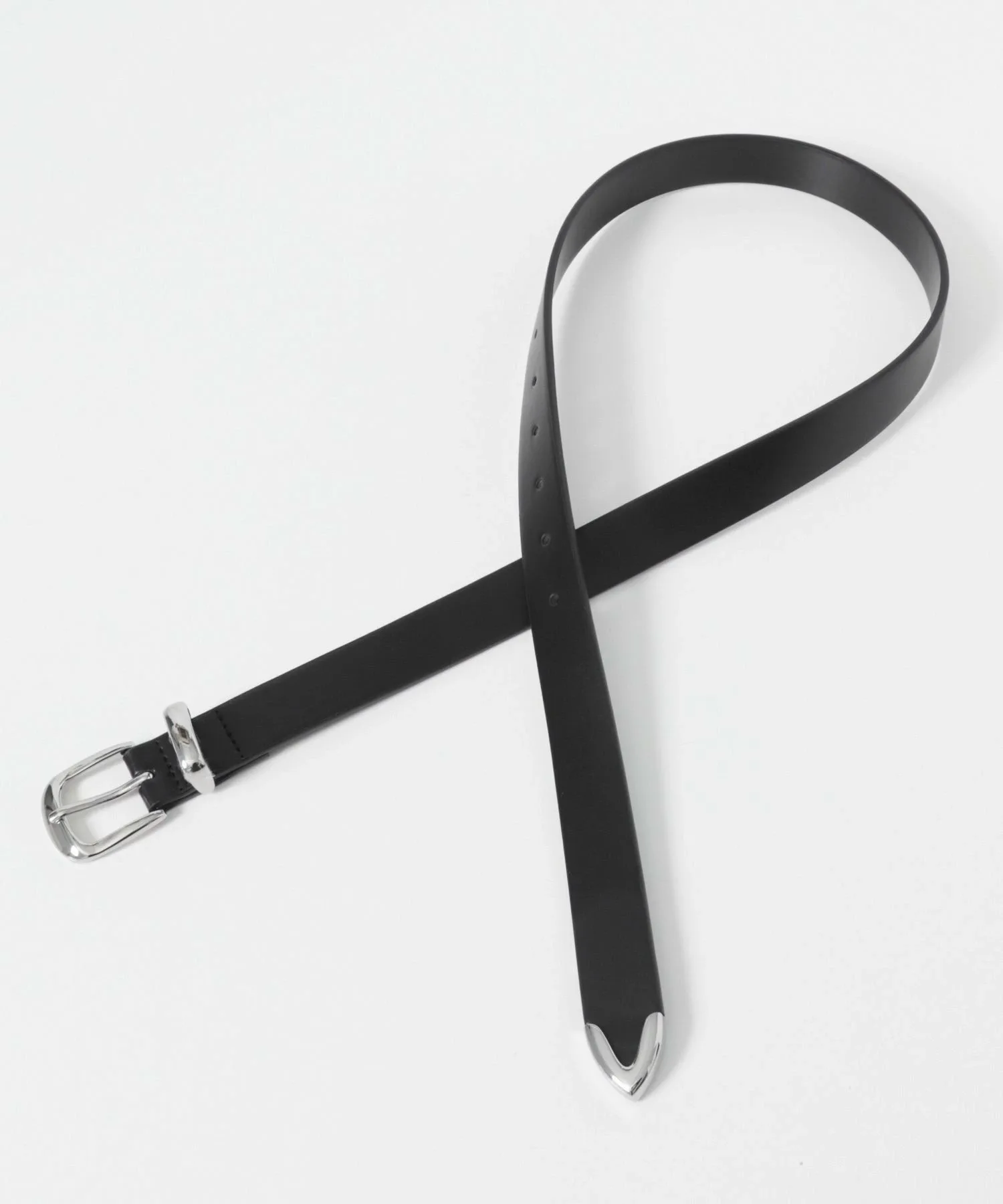 Расположение серебряной фурнитуры не только на пряжке, но и на поворотной части петли и наконечнике придает ему простой, но гламурный вид, словно аксессуар.