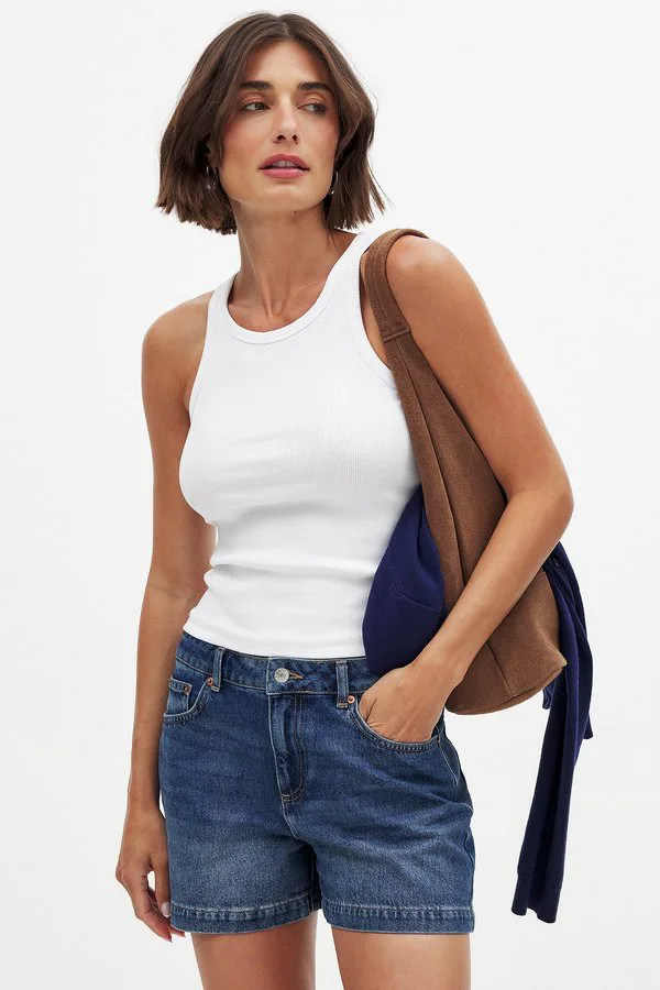 Джинсовые шорты со средней посадкой Na-Kd, Mid Blue